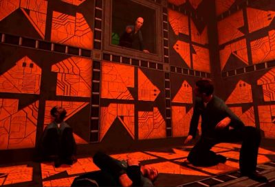 La próxima habitación es la de color anaranjado, este color representa el entusiasmo, en esta habitación el fugitivo al ver que se lanzó la bota y no pasó nada, ingresa en ella y muere rociado con ácido, es decir, que los colores cálidos están relacionados con el peligro.